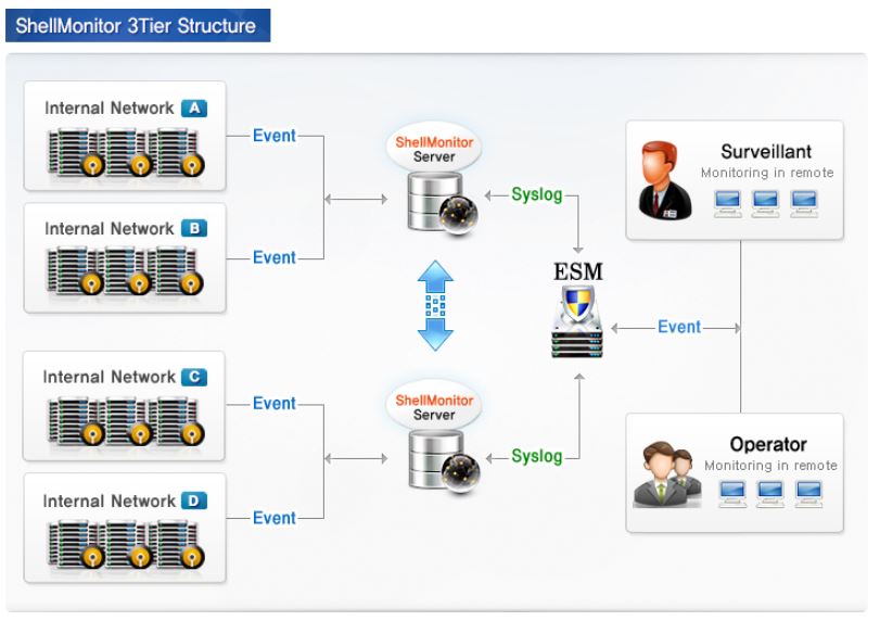 Consolidating management server for ShellMonitor Agents, box type appliance. It gathers detection infos from ShellMonitor Agents and sends them to ShellMonitor Manager.